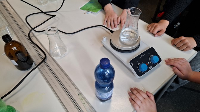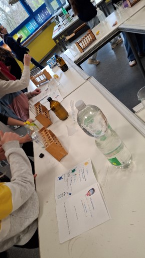 Täglich besuchte eine komplette Grundschulklasse die Gesamtschule und erhielt so Einblicke in den naturwissenschaftlichen Unterricht der weiterführenden Schule. In Kleingruppen von etwa drei Kindern führten die Schülerinnen und Schüler die Experimente eigenständig durch – unterstützt und angeleitet von den älteren Lernenden.