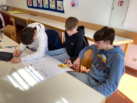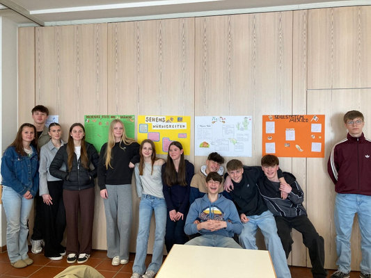 Neben der inhaltlichen Auseinandersetzung mit dem Land Mexico sowie der Hauptstadt Mexico Stadt, wurden organisatorische Aspekte und Fragen zur Reisevorbereitung geklärt. Die Schüler:innen arbeiteten in Kleingruppen unterschiedliche Themen (wie z.B. Feste und Kulturen, Schulsystem und allgemeine Infos über Mexico) aus, gestalteten dazu Plakate und trugen sie anschließend der gesamten Gruppe vor.